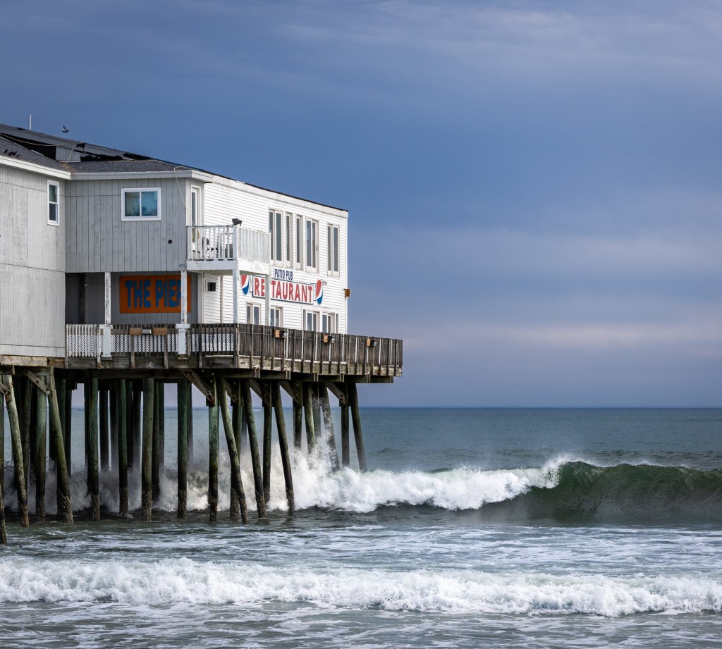 The sand was packed down from the moisture. No blowing sand, just that solid, quiet shoreline. The sound of waves rolling in under the pier, seagulls cutting through the air.